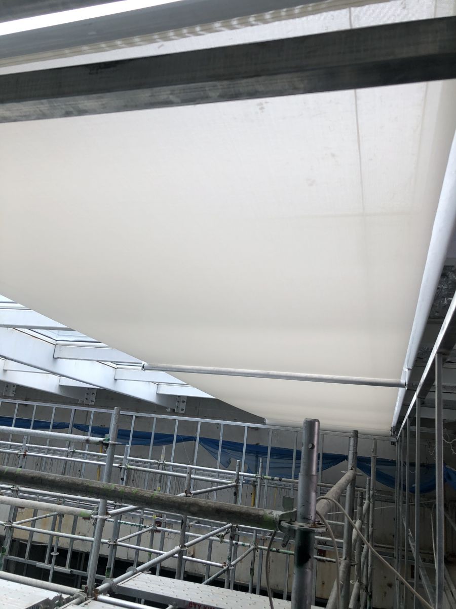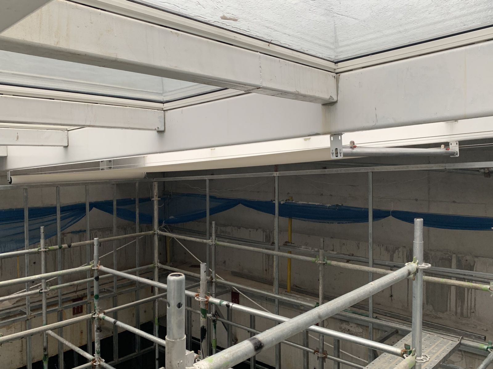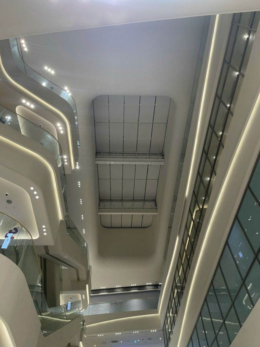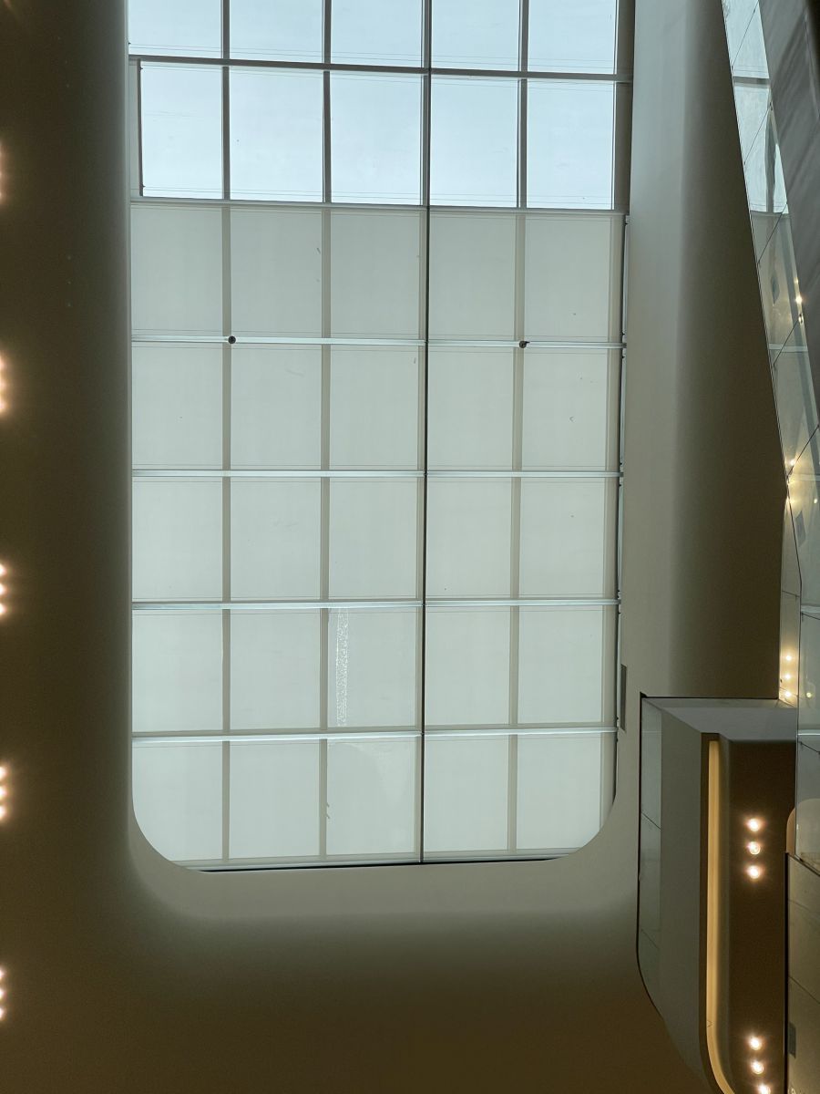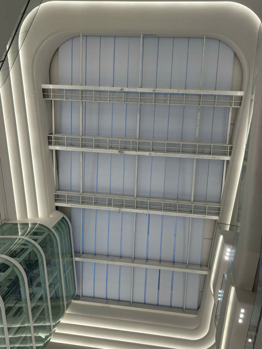 Hệ rèm trần phẳng tự động cao cấp Skylight che nắng trên mái kính, trần kính tại Vinhome Riverside Long Biên, Hà Nội