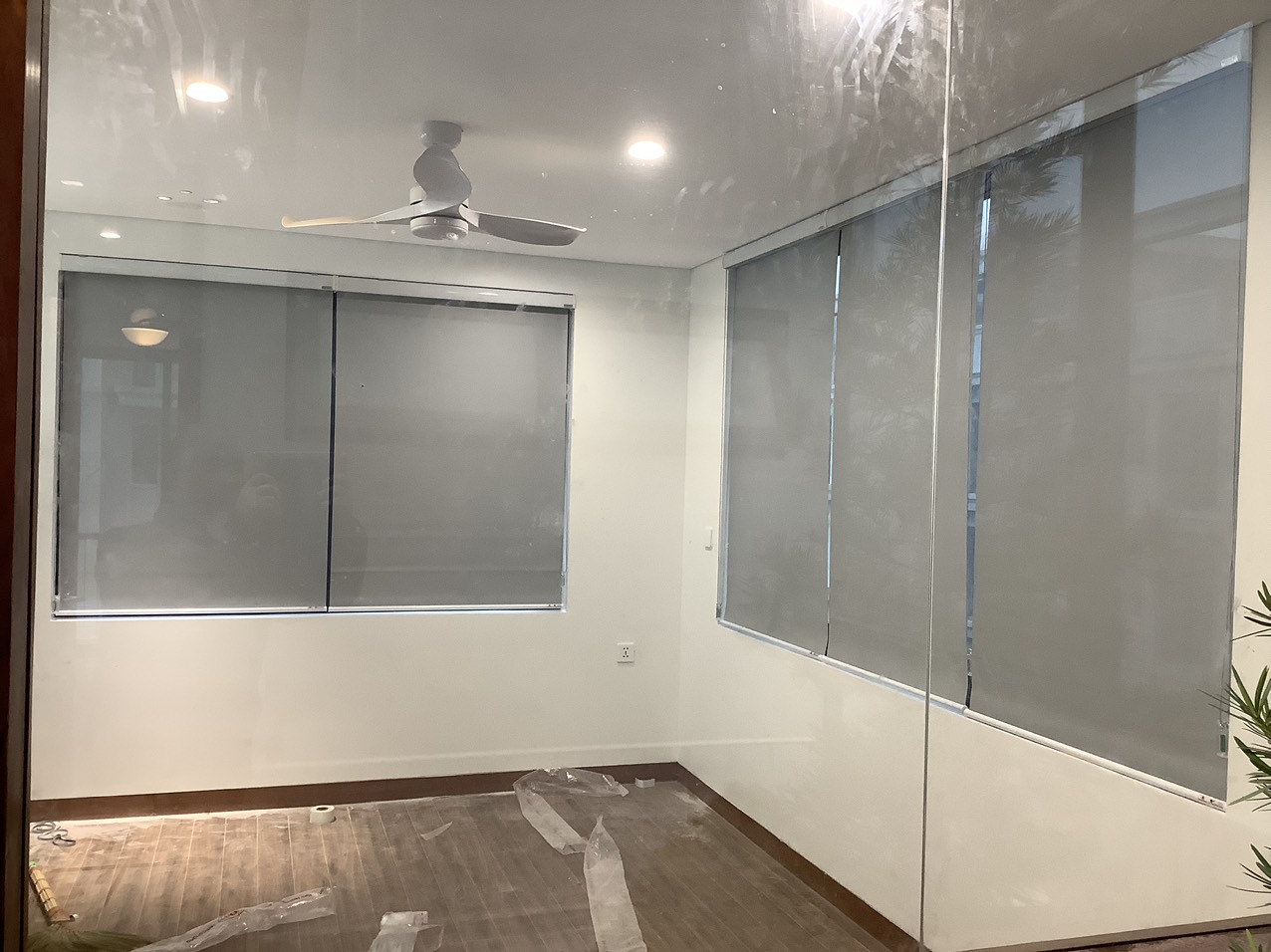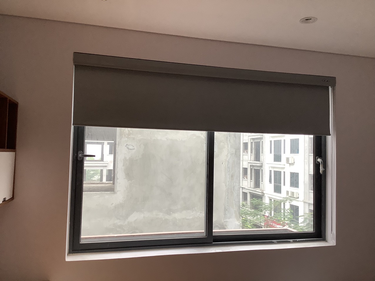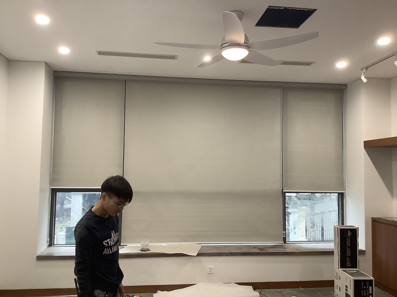 Rèm cuốn tự động cho cửa kính hành lang (trông thế thôi mà rộng đến 4200mm đấy nhé ^^ )