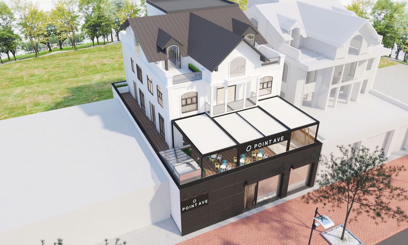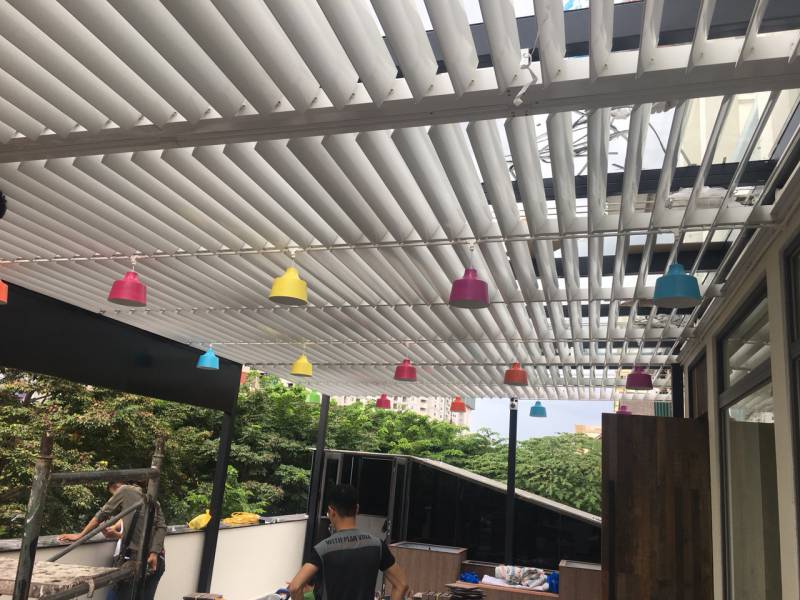 - Lam nhôm tự động đúng là sinh ra để xử lý những không gian như thế — phản xạ tới 90% ánh sáng, vẫn cho gió lưu thông, linh hoạt đóng mở theo thời tiết và nhu cầu sử dụng.