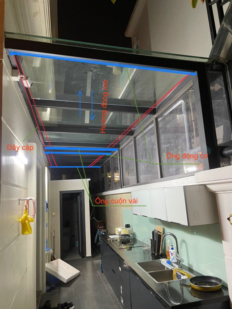 Hệ rèm trần phẳng tự động cao cấp Skylight che nắng trên mái kính, trần kính tại Vinhome Riverside Long Biên, Hà Nội