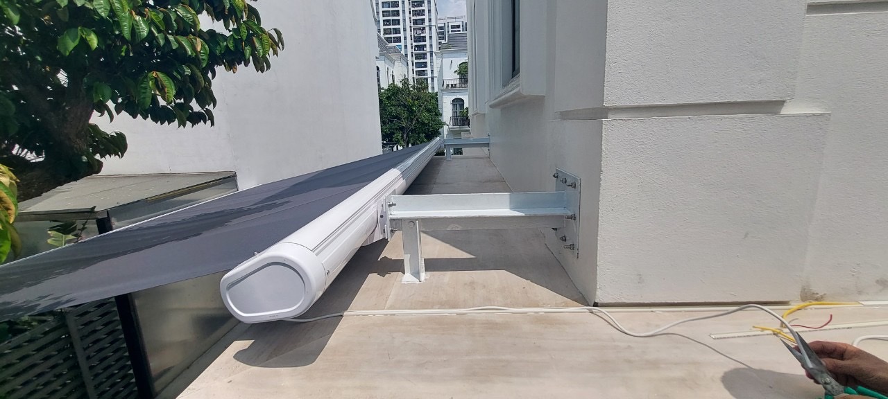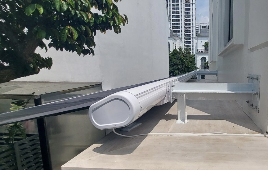 Hệ rèm cuốn tự động ngoài trời Zipper Blinds che nắng, mưa gió tại Vinhome Marina Hải Phòng