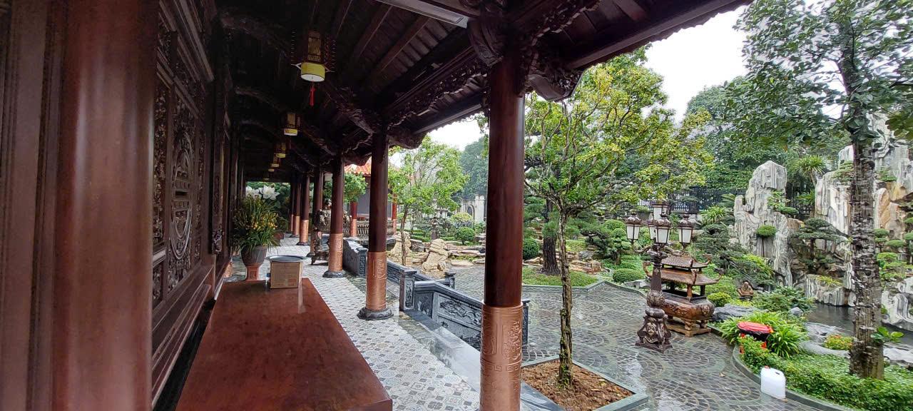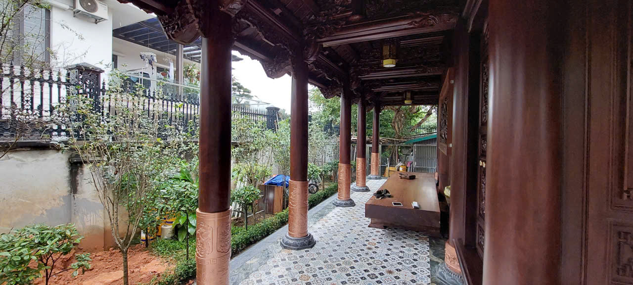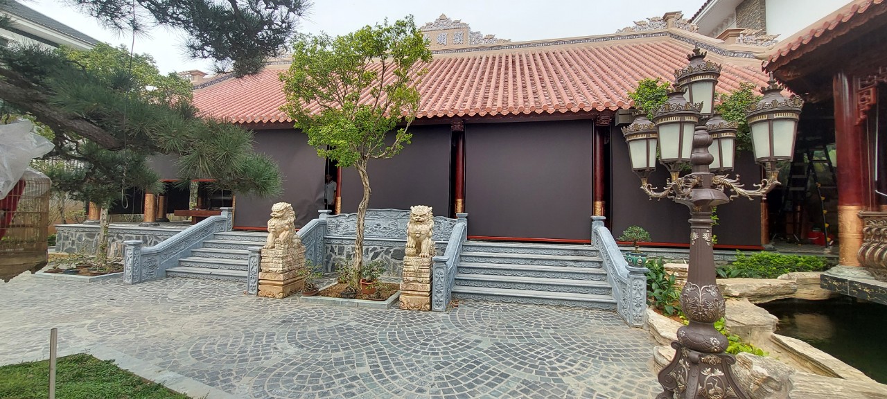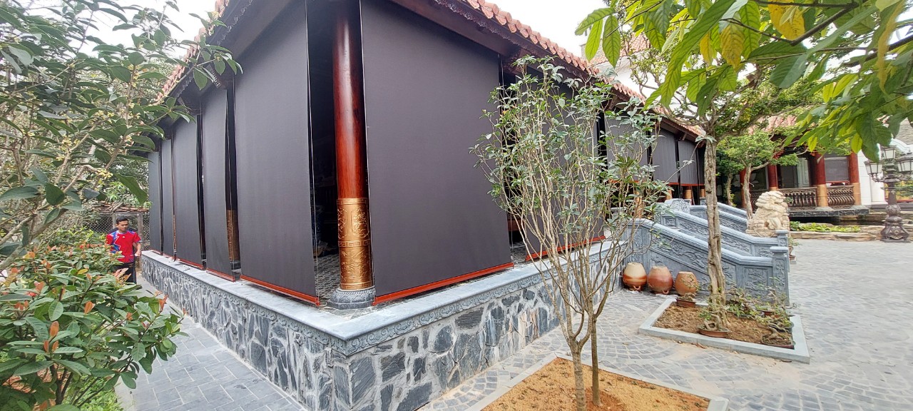 - Nhà thờ của chú nằm sát biệt thự, là công trình được phục dựng lại từ nền nhà cổ xưa. Tường gỗ được chạm trổ tinh xảo, từng đường nét đều toát lên vẻ uy nghi và cổ kính hiếm có. - Chú vừa chỉ vừa cười: “Chú phục dựng lại đấy. Nhà thờ này của dòng họ chú, lâu đời lắm rồi. Mỗi tội, nắng chiếu xiên, chú sợ hỏng hết vách gỗ.” - Mình đi quanh ngắm nghía, phải nói là đẹp mê ly luôn – toàn gỗ quý, khảm hoa văn tinh tế. - Mà đúng thật, nắng chiếu vào thế này thì gỗ có ngày cũng khóc thét. “Cháu xem giúp chú loại nào vừa che nắng tốt, vừa bền, lại hợp với không gian nhé.” Trong đầu mình bắt đầu “nhảy số”: