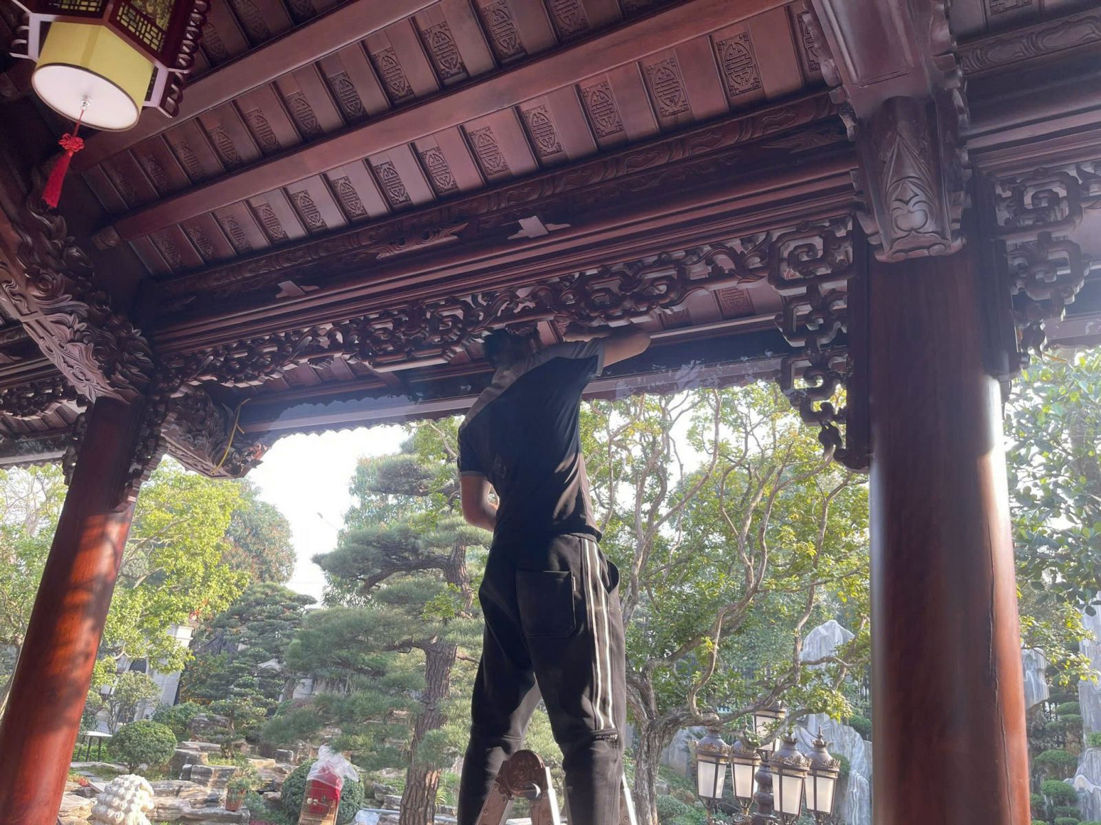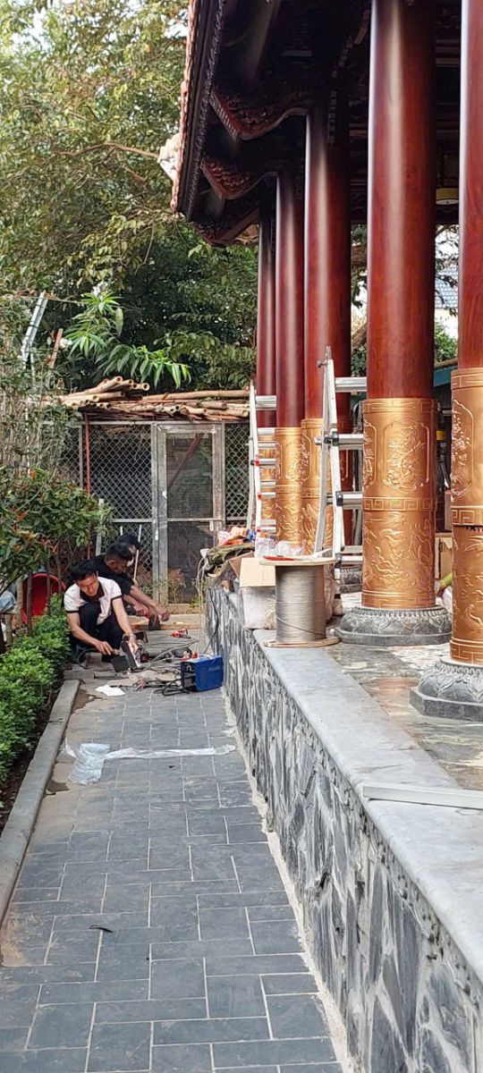 - Mùng 10 Tết – đang cùng anh em công ty du xuân ở Vinhome Ocean Park, điện thoại lại reo: “Cháu gửi chú số tài khoản nhé, chú tạm ứng luôn cho kịp tiến độ.” “Vâng ạ!” – Thế là vừa du lịch vừa “rước may mắn” đầu năm. - Đội kỹ thuật thì khỏi nói, toàn anh em gạo cội – hiểu ý nhau từng centimet. Kích thước, khung giá, sơn phủ… tất cả đã tính kỹ từ trước. Mỗi khâu lắp đặt đều được làm gọn gàng, chỉn chu, vì biết chú vốn kỹ tính lắm.