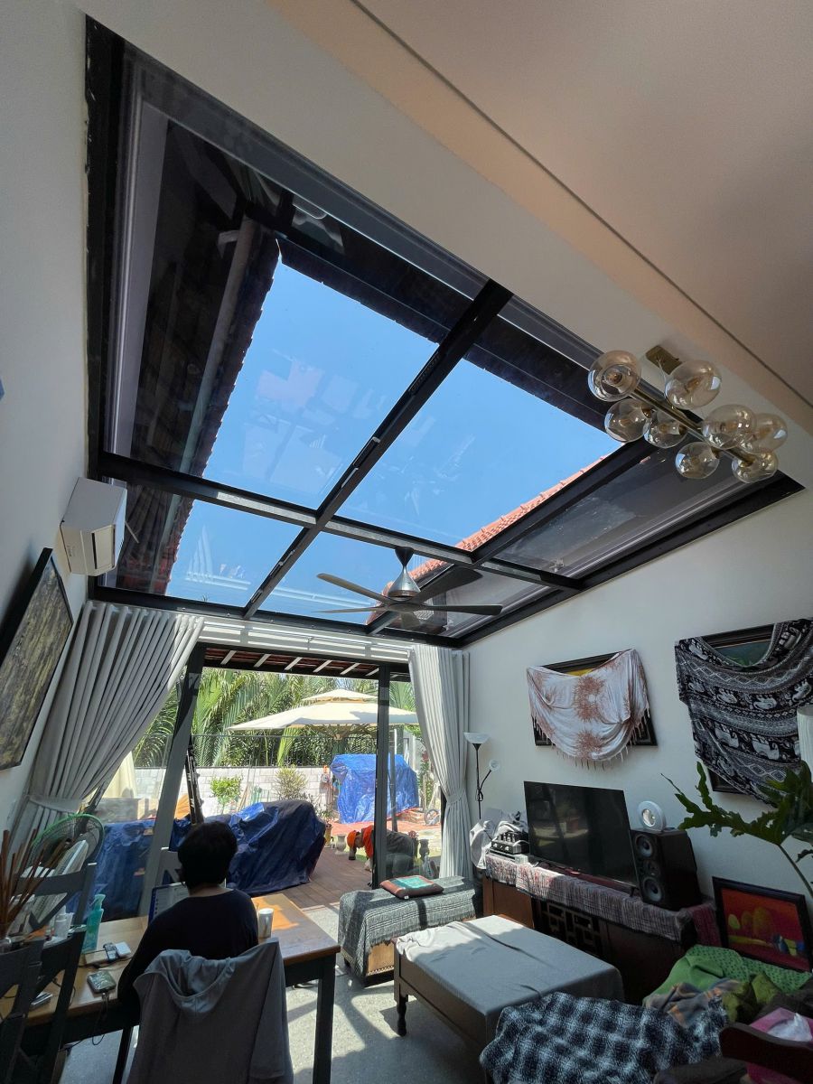 Hệ rèm cuốn tự động Skylight che nắng trên mái kính – Giải pháp “dễ thở” cho Homestay Hội An