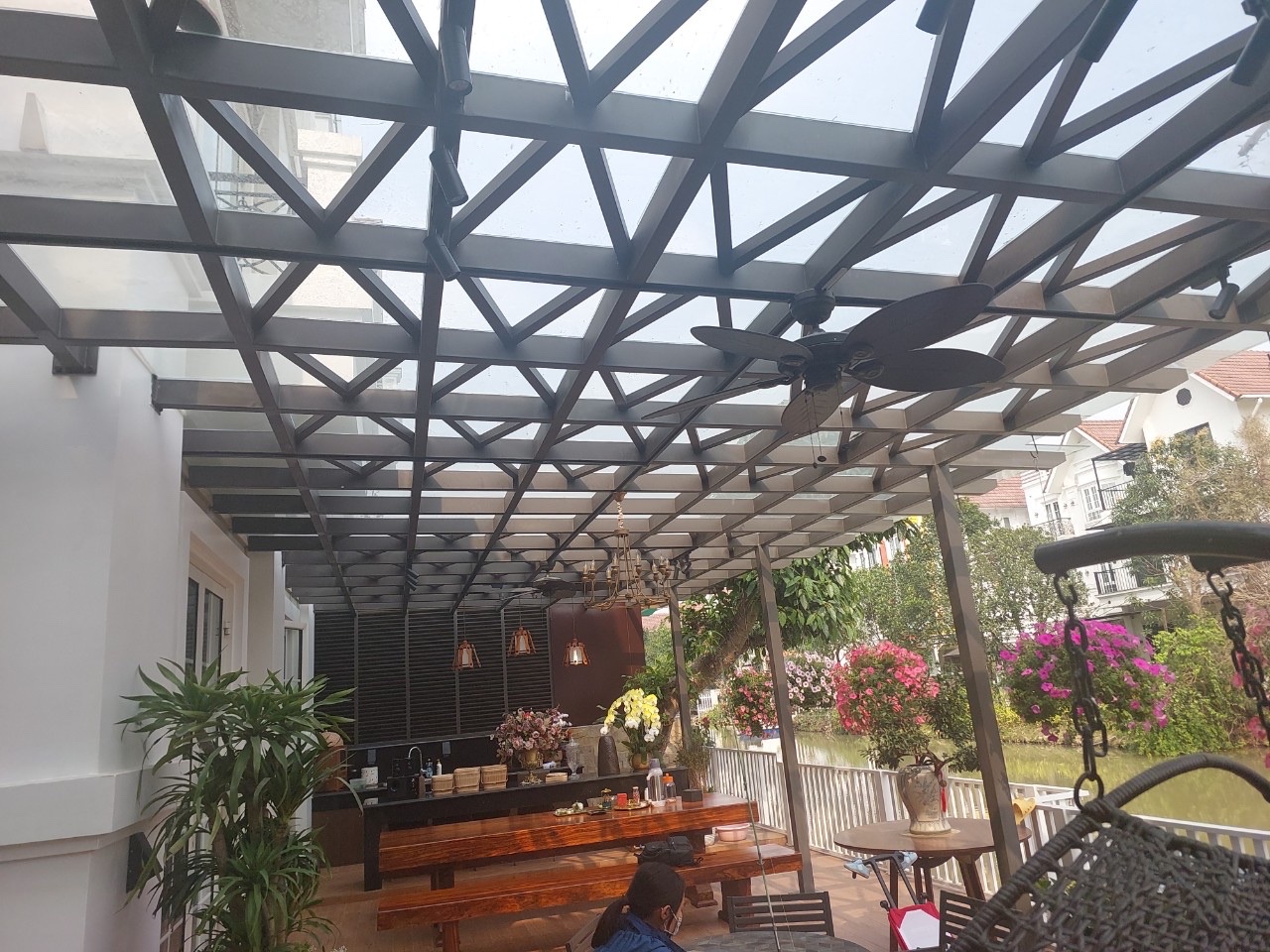 Hệ mái hiên tự động cao cấp nhập khẩu tiêu chuẩn Châu Âu tại Biệt thự Vinhome Riversides Long Biên, Hà Nội