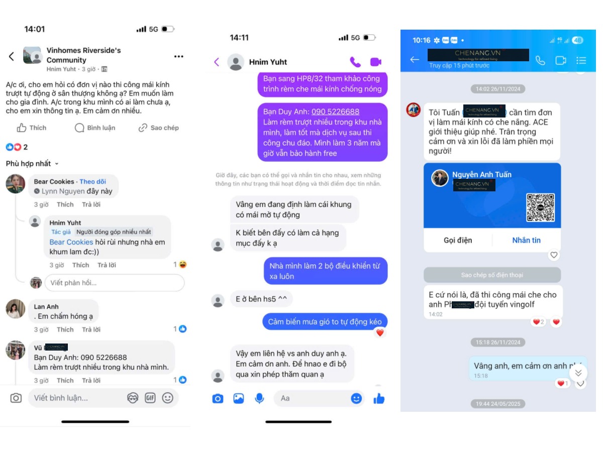 Hệ rèm Zipper & rèm cầu vồng tại The Legacy -- Khi niềm tin từ khách hàng dẫn tới một cơ hội mới 1. Lời nhắn từ người quen -- niềm tin được chia sẻ - Một tháng sau khi lắp cho nhà anh H. , điện thoại