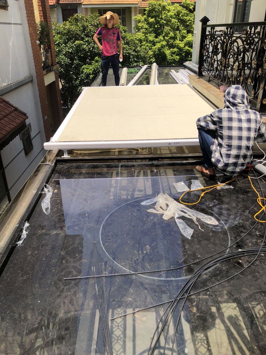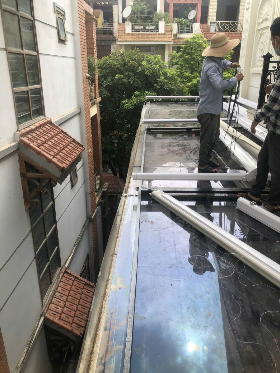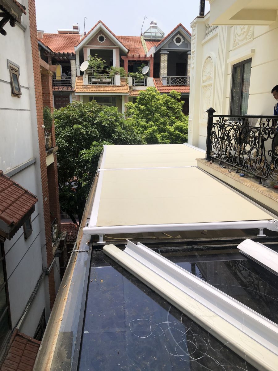 Hệ Skylight tự động cao cấp che nắng trên mái kính ngoài trời tại Biệt thự nhà khách phố Tam Trinh, quận Hoàng Mai, Hà Nội