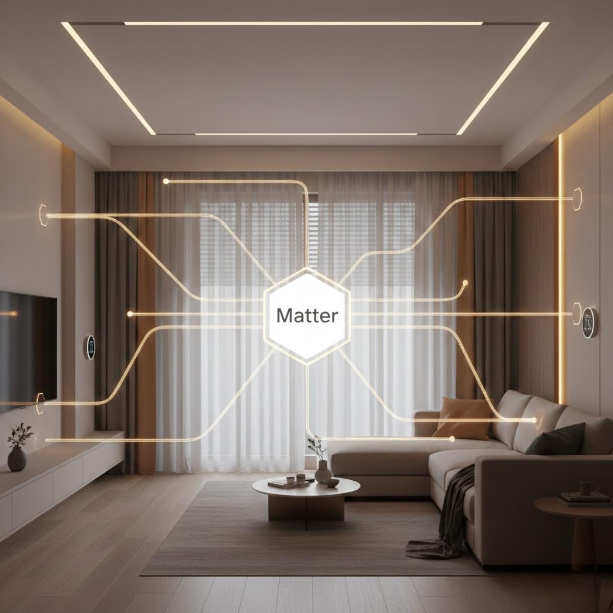 Matter là một tiêu chuẩn ứng dụng mở cho Smart Home, cho phép thiết bị từ nhiều thương hiệu hoạt động cùng nhau một cách tương thích, an toàn và đơn giản. Nó là “ngôn ngữ chung” giữa các thiết bị IoT từ nhiều hãng khác nhau.