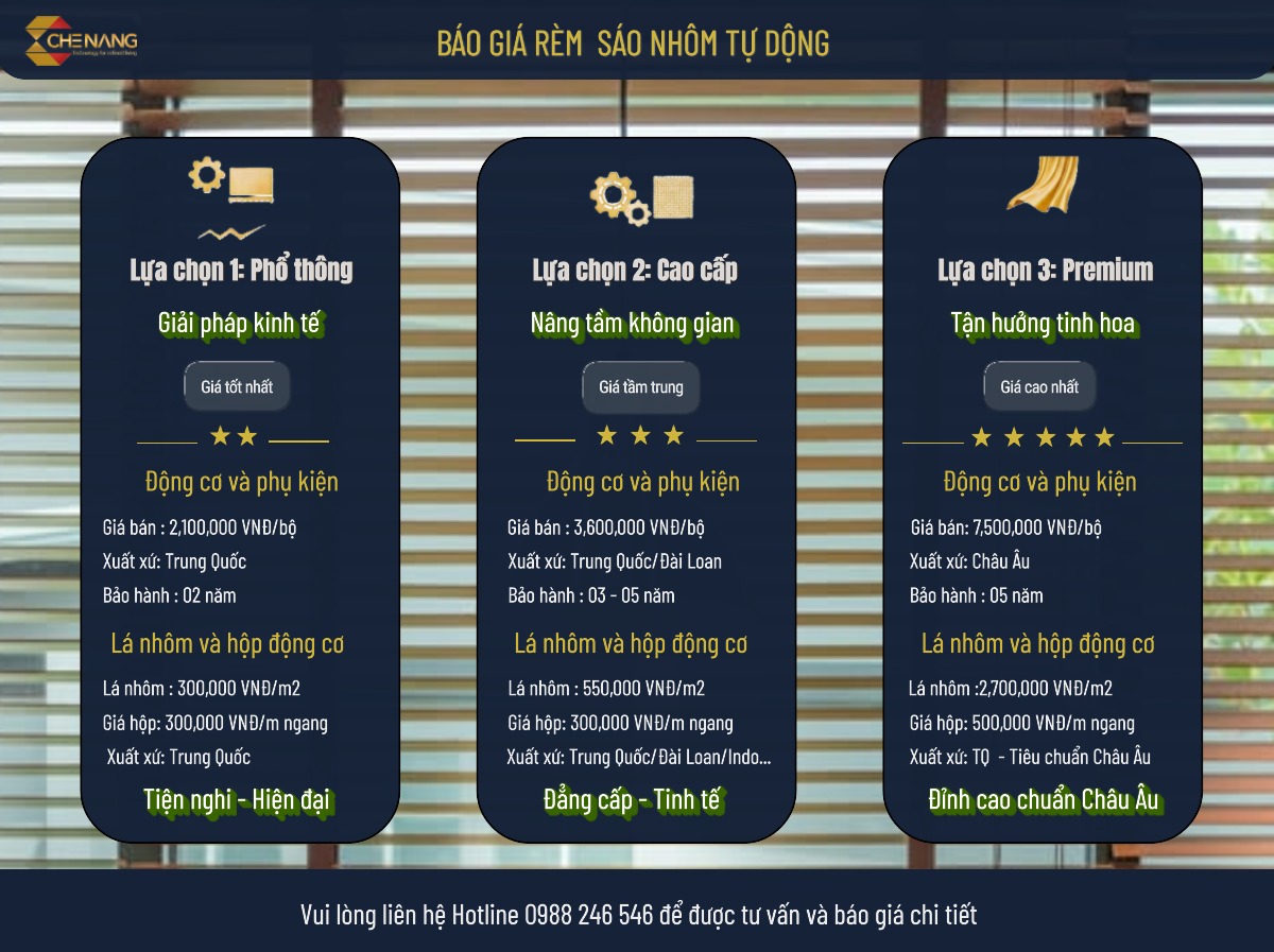 ✦ Ba phân khúc lựa chọn rèm sáo nhôm tự động – Đáp ứng mọi tiêu chuẩn sử dụng