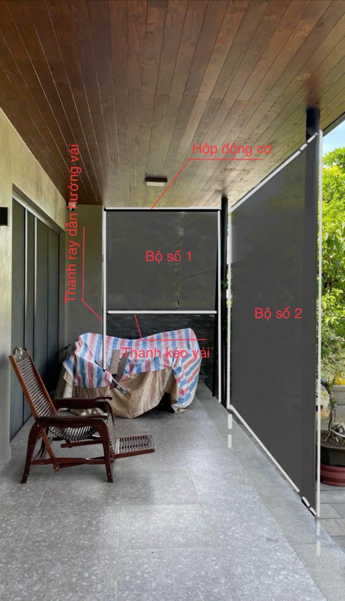 • Hạng mục: 02 bộ rèm cuốn tự động cao cấp Zipper ngoài trời