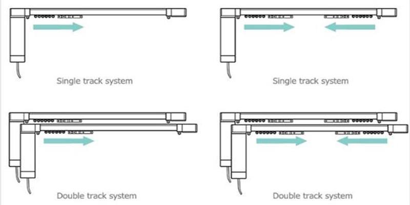 • Động cơ kéo tối đa 10m ray thẳng với khối lượng 35kg, có thể sử dụng ray cong hoặc vuông góc phù hợp với công trình.
