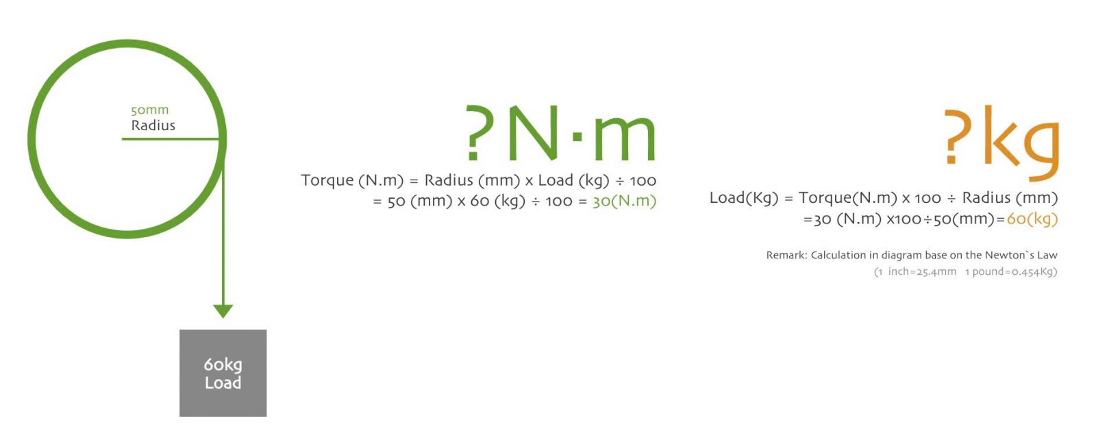 Mô-men xoắn (N.m) = | Bán kính ống (mm) x Tải trọng (kg) |: 100